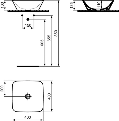 Ideal Standard Connect Air washbasin bowl 400mm, square, without tap hole, without overflow