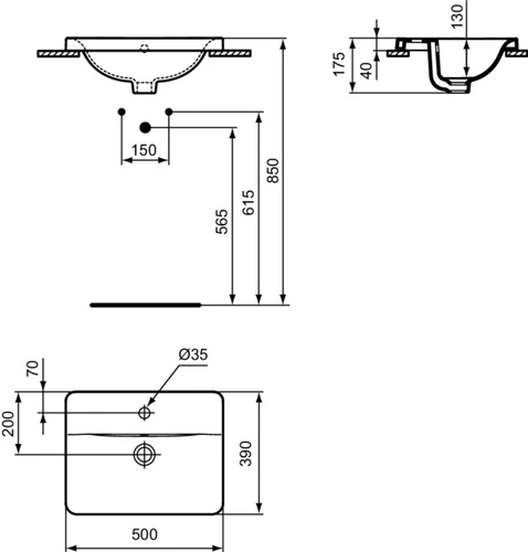Ideal Standard Connect built-in washbasin, 1 tap hole, with overflow, 500x390x175mm