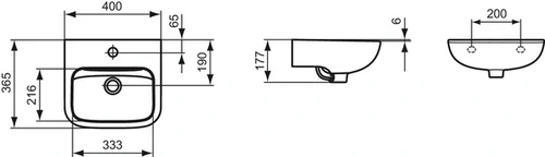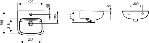 Ideal Standard Contour 21 hand washbasin 400mm, 1 tap hole, without overflow, white