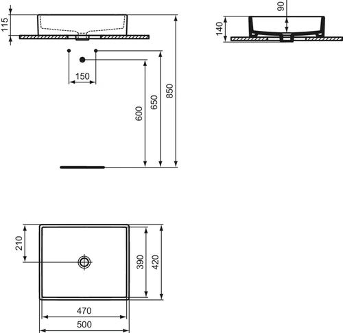 Ideal Standard Strada countertop washbasin 500mm, without tap hole, without overflow
