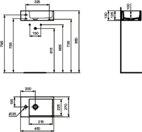 Ideal Standard Strada hand washbasin 450mm, 1 tap hole, without overflow