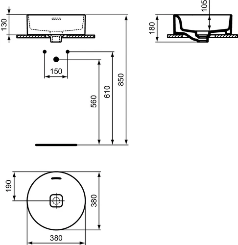 Ideal Standard Strada II countertop washbasin 380mm, round, without tap hole, with overflow