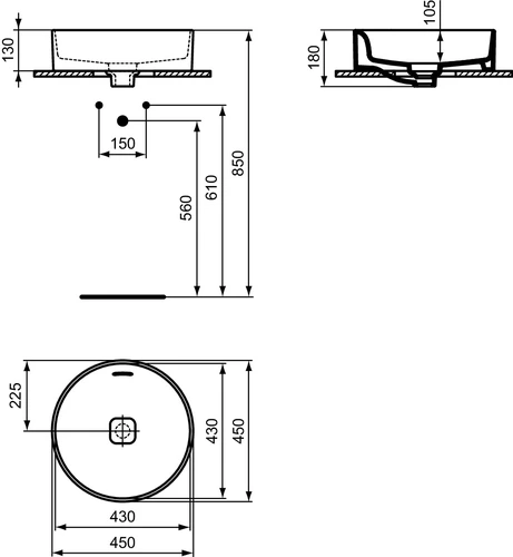 Ideal Standard Strada II countertop washbasin 450mm, round, without tap hole, with overflow