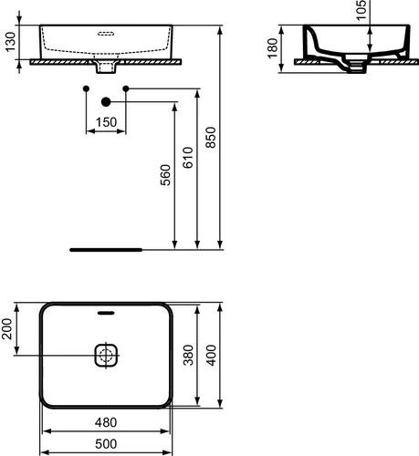 Ideal Standard Strada II countertop washbasin 500mm, without tap hole, with overflow