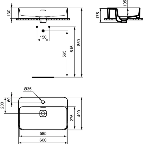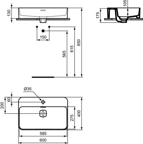 Ideal Standard Strada II countertop washbasin 600mm, 1 tap hole, with overflow
