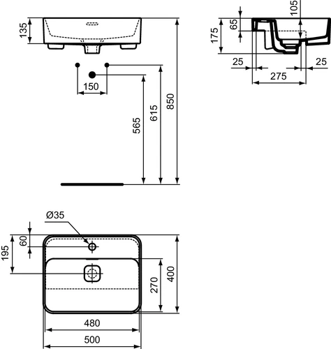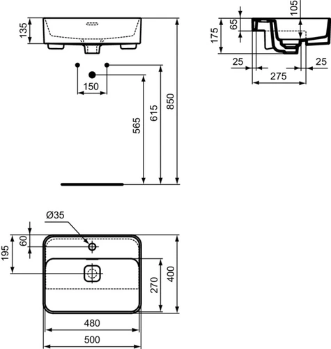 Ideal Standard Strada II semi-recessed washbasin 500mm, 1 tap hole, with overflow