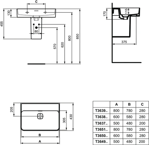 Ideal Standard Strada II washbasin 800mm, without tap hole, with overflow, polished