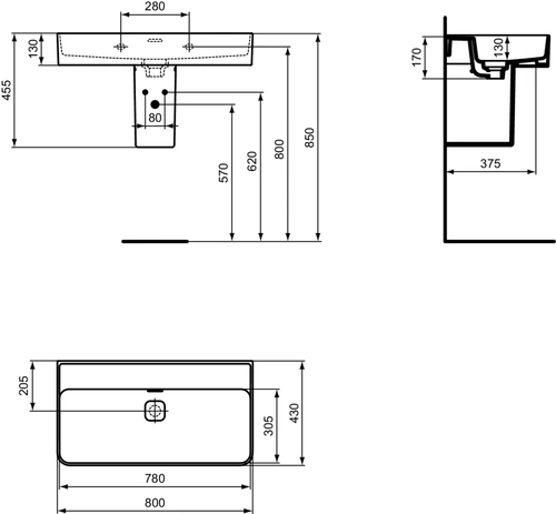 Ideal Standard Strada II washbasin 800mm, without tap hole, with overflow