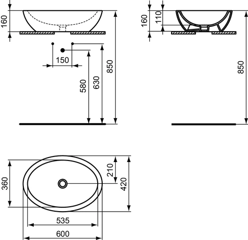 Ideal Standard Strada O washbasin bowl, Ovale, without overflow
