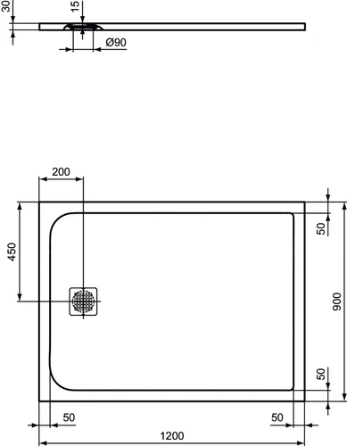 Ideal Standard Ultra Flat S rectangular shower tray 1200x900x30mm
