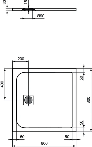 Ideal Standard Ultra Flat S square shower tray 800x800x30mm