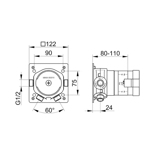 - 1x main body for concealed wall-mounted Thermostatarmaturen