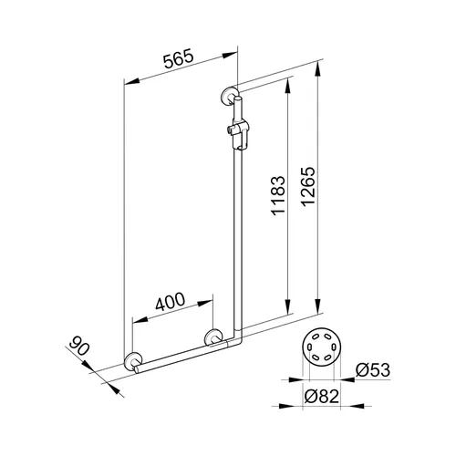 KEUCO PLAN Care angled handle with shower slide, width 565mm, height 1265mm