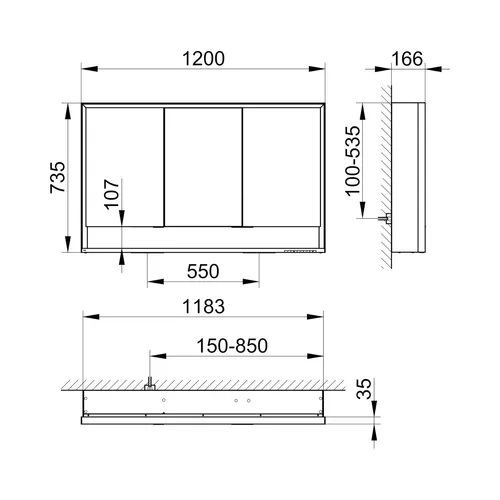 - 1 x 3-door wall-mounted mirror cabinet
