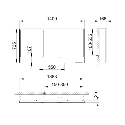 - 3 hinged doors made of crystal double mirror with soft-close mechanism