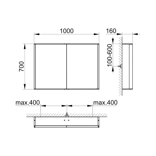 - 1 x mirror cabinet, wall-mounted, 2 doors