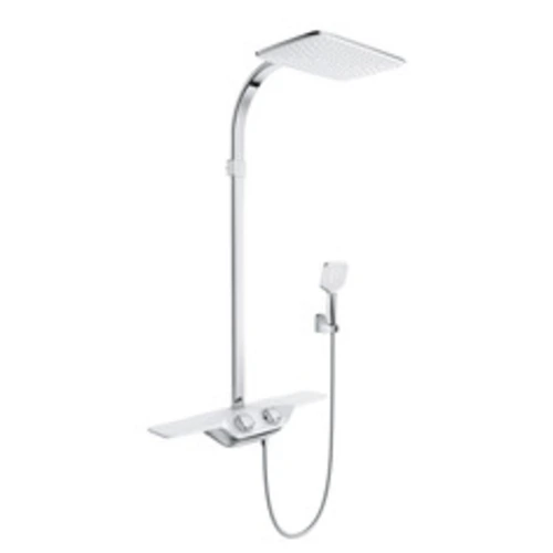 KLUDI COCKPIT Discovery Thermostat Dual Shower System, with shelf, white/chrome