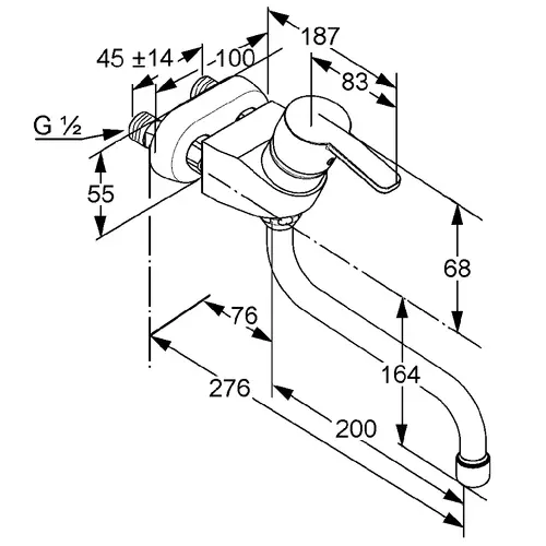 KLUDI LOGO NEO wall-mounted single-lever sink mixer, closed lever, wall-mounted, 45 mm tap hole, 200 mm spout, Chrome