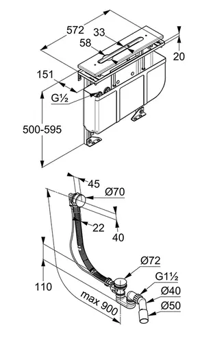 KLUDI ROTEXA MULTI bath rim mounting unit, for three-hole taps