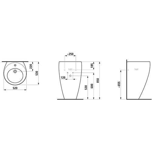 - Width: 520 mm, Height: 850 mm, Depth: 530 mm