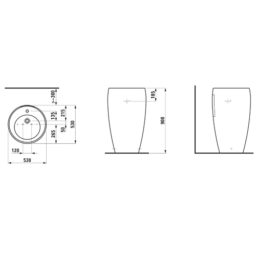 - Length: 530 mm, width: 530 mm, height: 900 mm