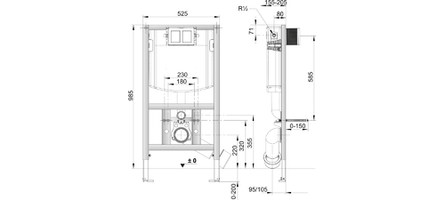LAUFEN CWL102 installation system, for wall-hung WCs, low installation height 985mm
