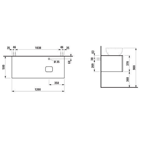 - Width: 1200 mm, Depth: 500 mm, Height: 370 mm