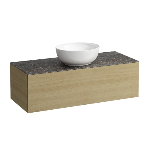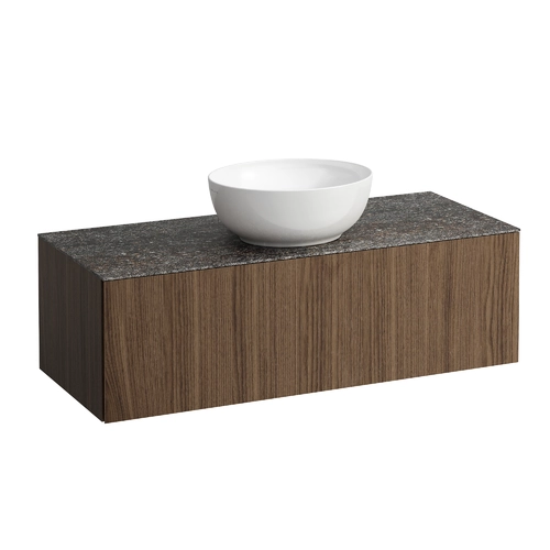 LAUFEN Il Bagno Alessi drawer unit, 1 tap hole, Marrone Naturale stone top, center cutout, 120x50x37cm, 1 drawer
