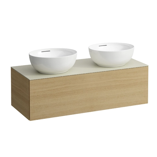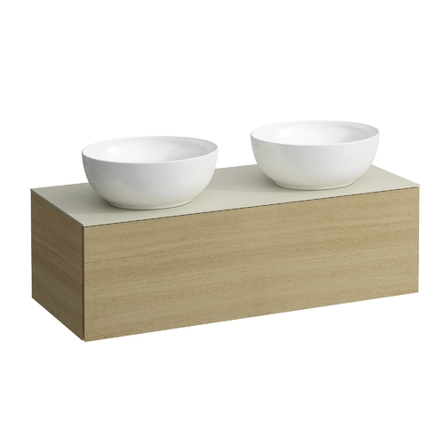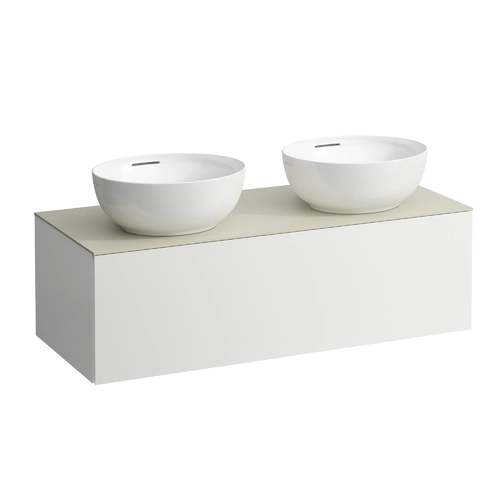 LAUFEN Il Bagno Alessi drawer unit, 1 tap hole, stone top Calce Avorio, cut-out right/left, 120x50x37cm, 1 drawer
