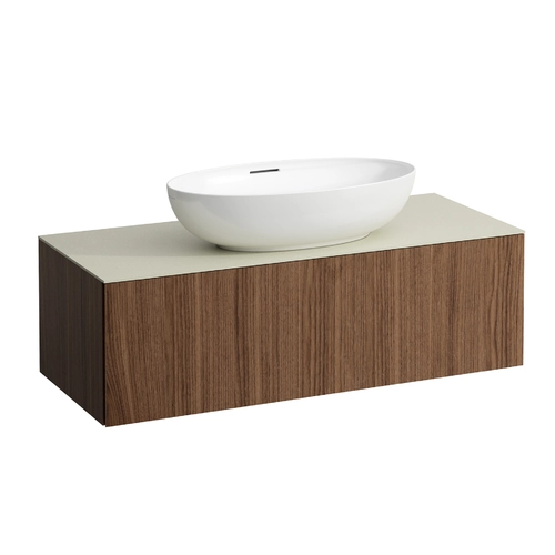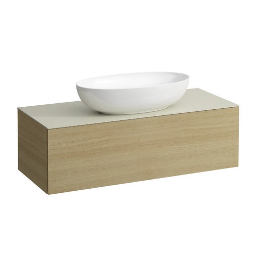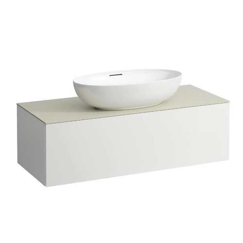 LAUFEN Il Bagno Alessi drawer unit, 1 tap hole, stone top Calce Avorio, cutout center, 120x50x37cm, 1 drawer