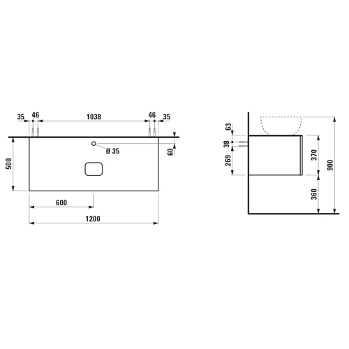 - Width: 1200 mm, Depth: 500 mm, Height: 370 mm
