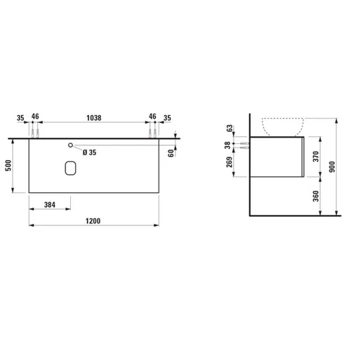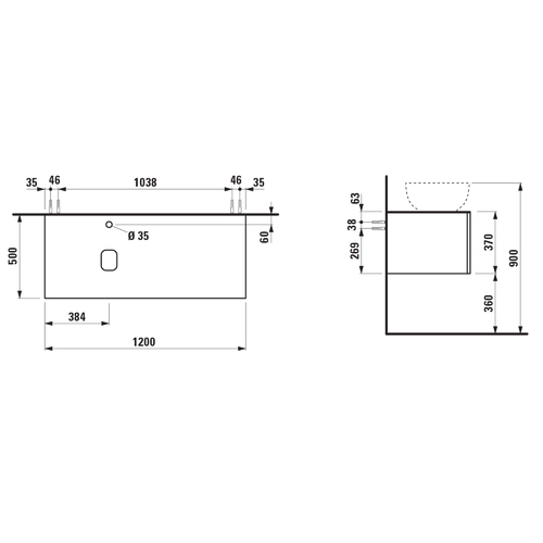 • Width: 1200 mm, Depth: 500 mm, Height: 370 mm