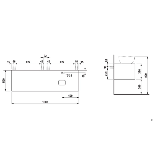 - Width: 1600 mm, Depth: 500 mm, Height: 370 mm