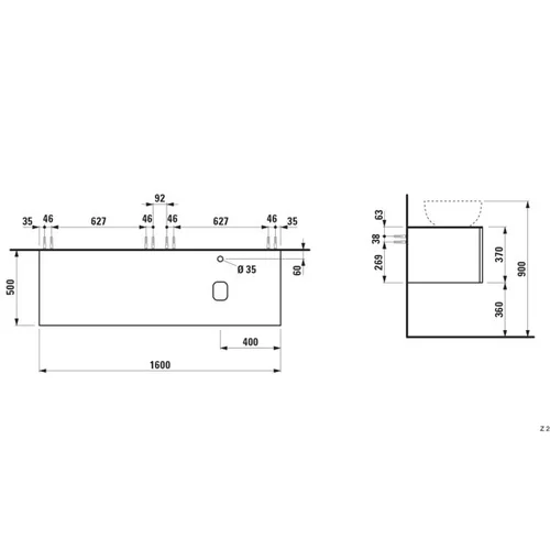 - Width: 1600 mm, Depth: 500 mm, Height: 370 mm