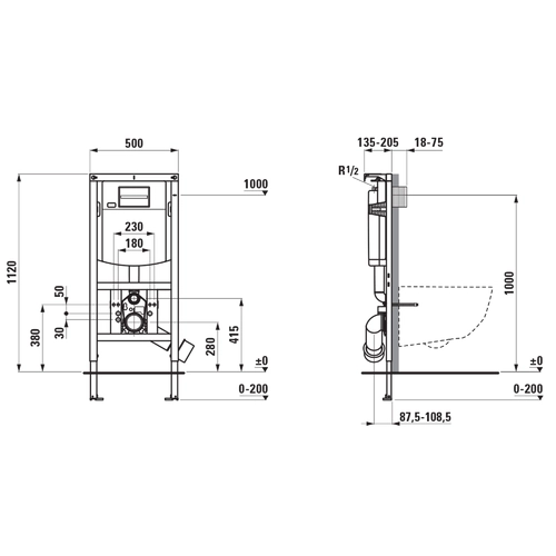 LAUFEN INEOLINK installation element, with cistern, for wall-hung WC, for disabled access