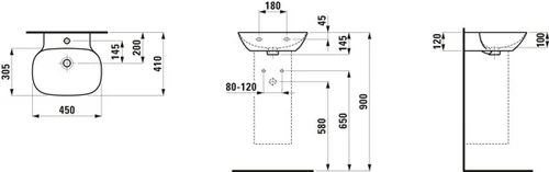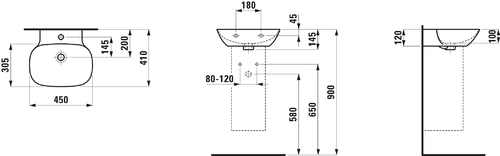 LAUFEN INO hand wash basin, without tap hole, without overflow, 450x410mm