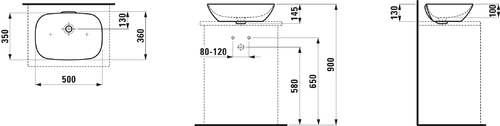 LAUFEN INO washbasin bowl, without tap hole, with overflow, US closed 500x360mm