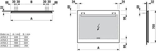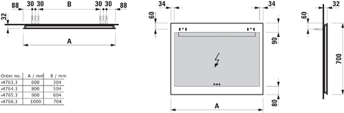 LAUFEN Leelo mirror with integrated horizontal LED lighting, aluminium frame, 600 mm, version with 3 touch sensor switches