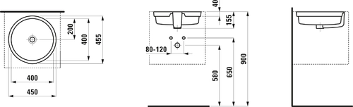 LAUFEN Living City built-in washbasin from below, with overflow, without tap hole, 450x455mm, white