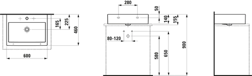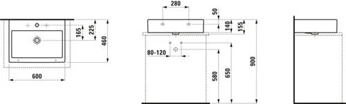 LAUFEN Living City countertop washbasin, 3 tap holes, with overflow, 600x460mm, white