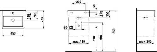LAUFEN Living City hand wash basin, without tap hole, with overflow, 450x380mm, white