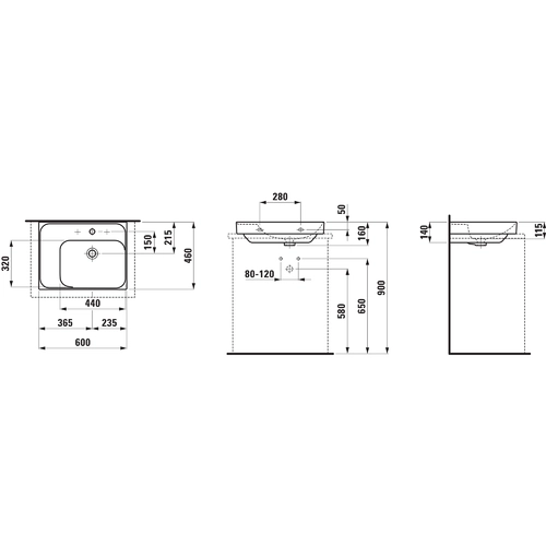 LAUFEN MEDA countertop washbasin, polished, shelf left, 600x460mm, 1 tap hole, with overflow
