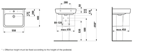 LAUFEN PRO A washbasin, 1 tap hole, with overflow, 550x480mm