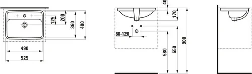 LAUFEN PRO S built-in washbasin, 1 tap hole, with overflow, 525x400mm, US closed