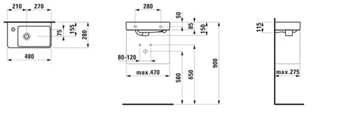 • Length: 480 mm, width: 280 mm, height: 150 mm