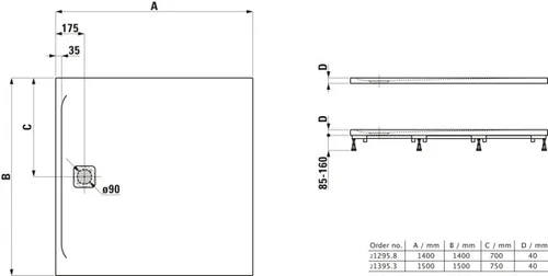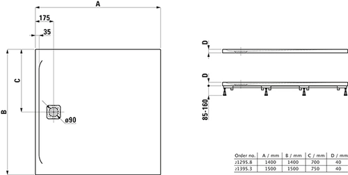 LAUFEN Pro shower tray, 1400x1400x40mm, 0