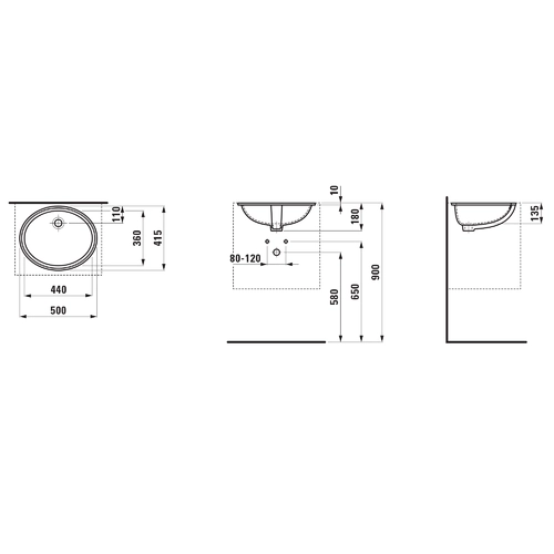 LAUFEN Savoy built-in washbasin, installation from below, without tap hole, with overflow, polished underside, Ovale, 500x416mm