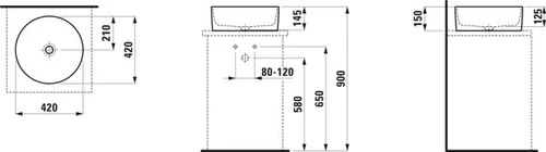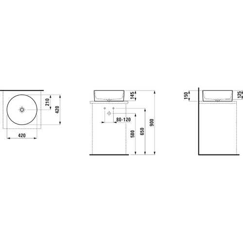 LAUFEN Savoy washbasin bowl, without tap hole, without overflow, D=420mm