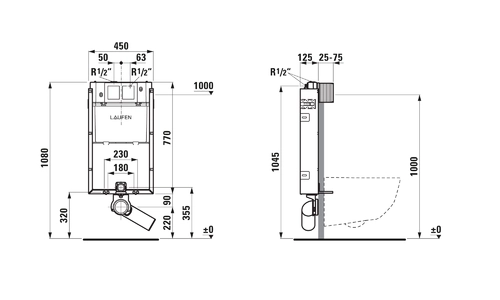 LAUFEN TW1 installation system, wet construction, for wall-mounted toilet, with cistern, dual flush 6/3 liters