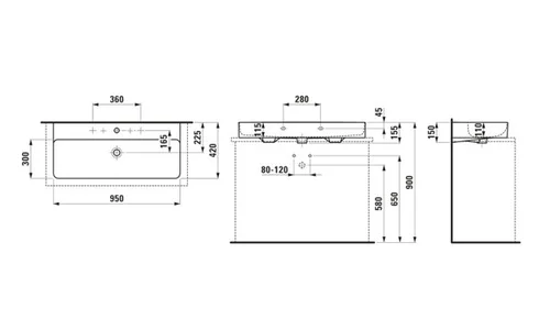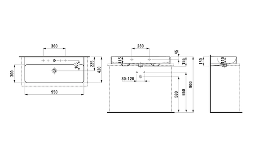 - Length: 950 mm, width: 420 mm, height: 115 mm